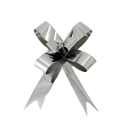 These high quality polyester metallic pull bows add the perfect finish to any gift basket, box, floral arrangement, or gift in general. Simply pull the two narrow pieces of ribbon at one end, tie a knot and you have fabulous bow! Team up with curling ribbon for extra impact. Dimensions 18mm Ribbon Width 100 Pack