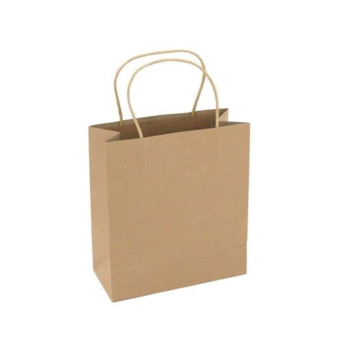 Kraft paper bags with a strong twisted paper handle for carrying. Features a Gusset at the base. Dimensions 180mm Long 85mm Wide 210mm High 10 Per Pack Twist Paper Handle 140gsm