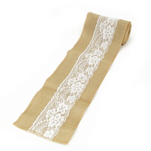 Stitched edge Jute Runner with lace 2m long x 15cm wide