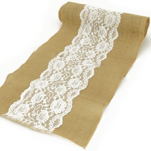 Stitched edge Jute Runner with lace 2m long x 27cm wide