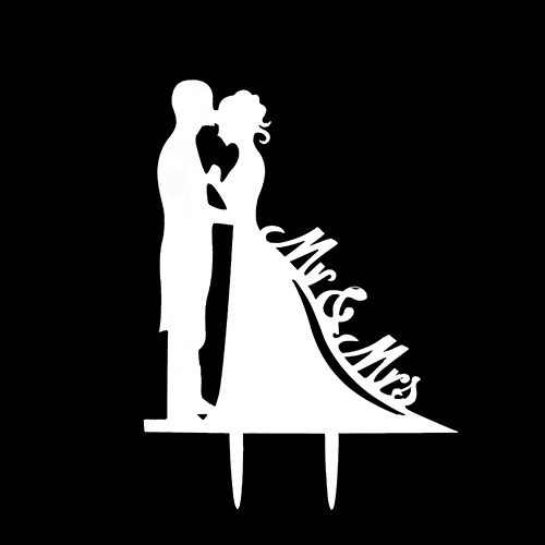 A White, plastic bride and groom silhouette cake topper with prongs to insert into cake. Dimensions 165mm High