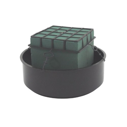 A large round bowl designed to hold larger floral arrangements. Fill with either dry or wet floral foam.