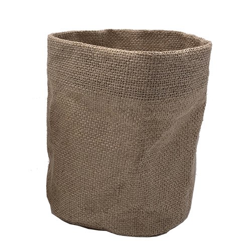 Natural look, cylindrical Jute Bag with a water resistant plastic backing. Perfect for pot plants, posies and arrangements or use as gift hamper for small items. 15.5cmD x 17cmH