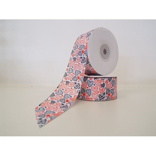 White grosgrain ribbon with hearts, perfect for that touch of love on presents or bouquets
