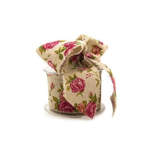 Made with tightly woven natural hessian and featuring a beautiful pink rose pattern. Dimensions 60mm Wide 10 Metres