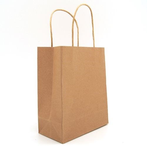 Kraft paper bags with a strong twisted paper handle for carrying. Features a Gusset at the base. Dimensions 205mm Long 85mm Wide 270mm High 10 Per Pack Twist Paper Handle 140gsm