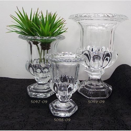 Large detailed Glass Urn. A staple vintage look centerpiece Vase. Pair this with our Small Glass urns on either side.