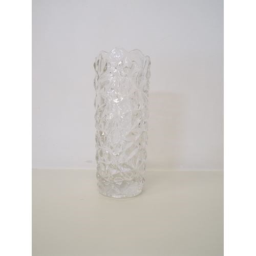 Pretty Etched cylinder vase, makes a great gift. Suitable for smaller blooms, daffodils, freesias, tulips...