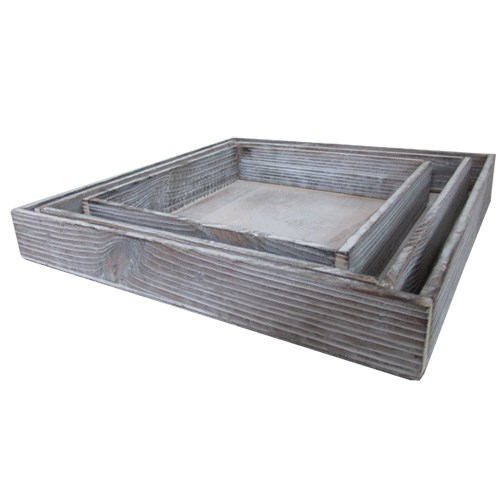Square Wooden Trays - Grey - Set of 3 Small - 21 x 21 x 4cmH Med - 27.5 x 27.5 x 4cmH Large - 31 x 31 x 4cmH