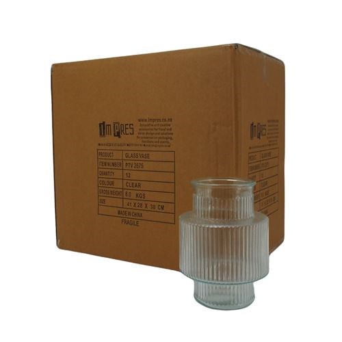 More info Medium Ribbed Glass Cylinder 34 in stock SKU: PTV2277 11cm Dia x 24cm H (12 Per Carton)