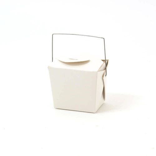 A noodle box with a silver metal handle. The perfect modern favor box. Dimensions 70mm Long 55mm Wide 60mm Long x6 boxes per pack