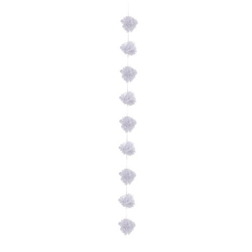 Tiny tissue Pom Pom balls attached to a 3 metre length. Very cute. Available in 4 colours. Dimensions 90mm Diameter 3 Metres Long