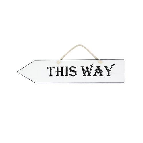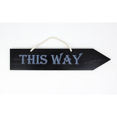 A reversible wooden arrow sign with a rope handle attached to hang where you need it to. Dimensions 120mm High 550mm Long